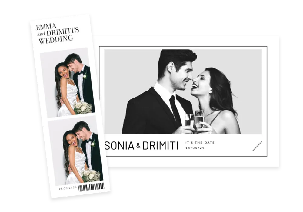 Everyone gets a print! Whether you love the classic 2x6 print strips or the larger, premium 4x6 prints, either option is included in our packages! Also we can do pretty much any design you dream of! Our in-house graphic designer will craft a custom framed print to match perfectly with your theme and style.